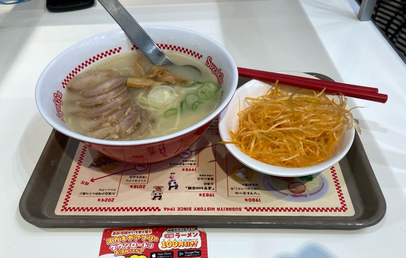 スガキヤのラーメン!(肉増し辛ネギ付き)